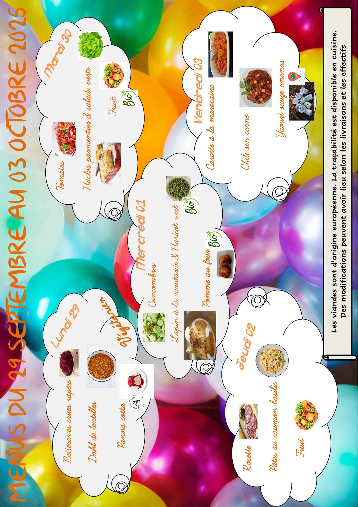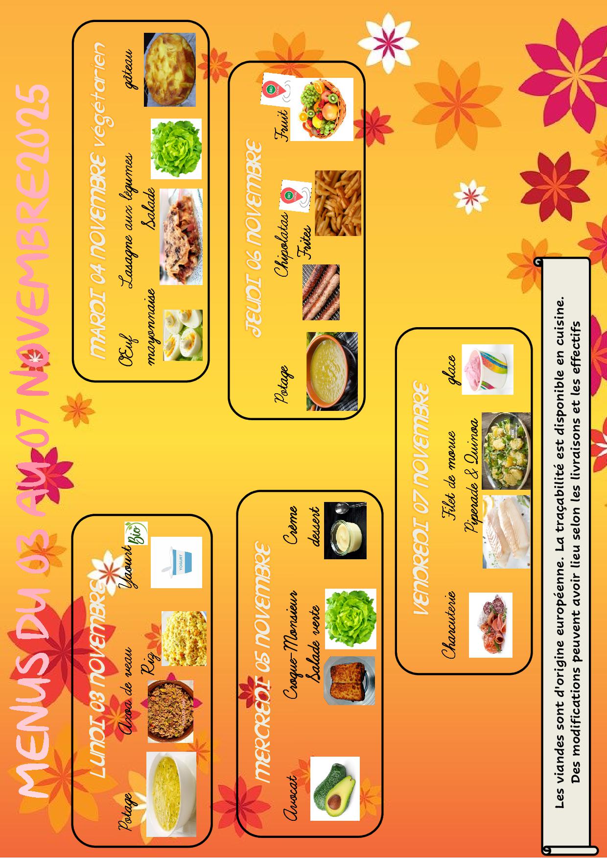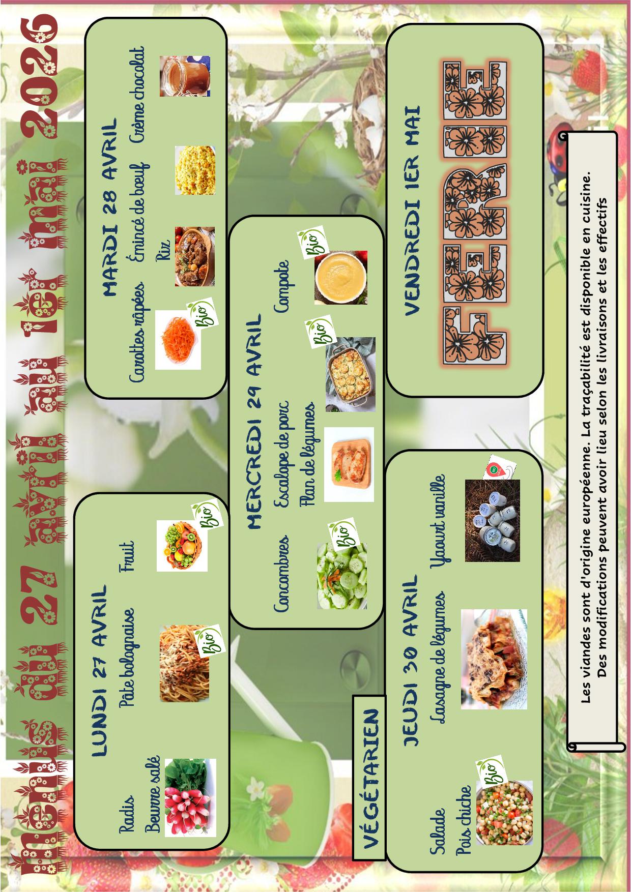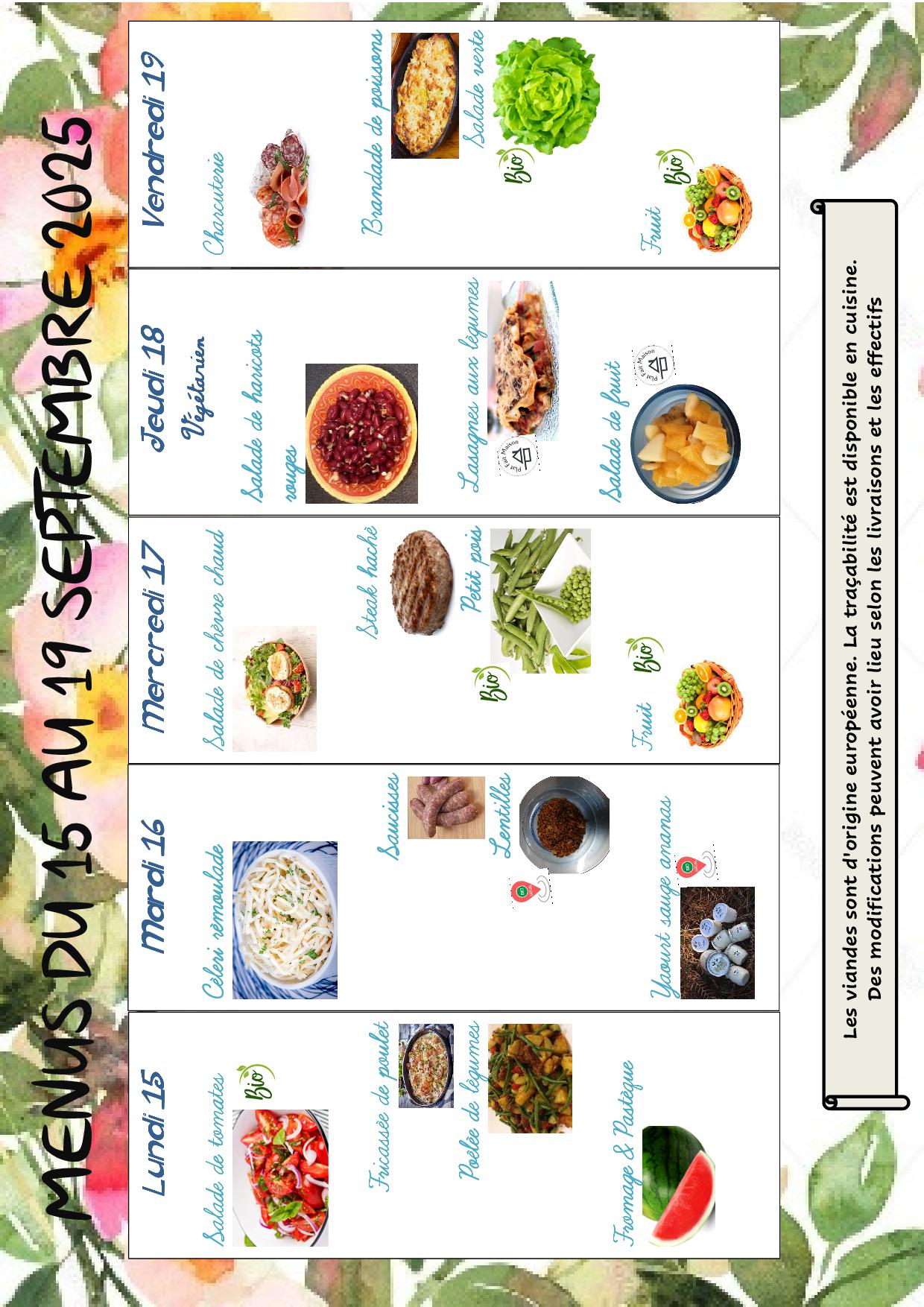 MENU DU RESTAURANT SCOLAIRE Publié le 04 janvier 2022 / Dernière modification le 26 mars 2024 MENU DU RESTAURANT SCOLAIRE Publié le 04/01/2022 - Dernière modification le 26/03/2024 Découvrez le menu du restaurant scolaire.